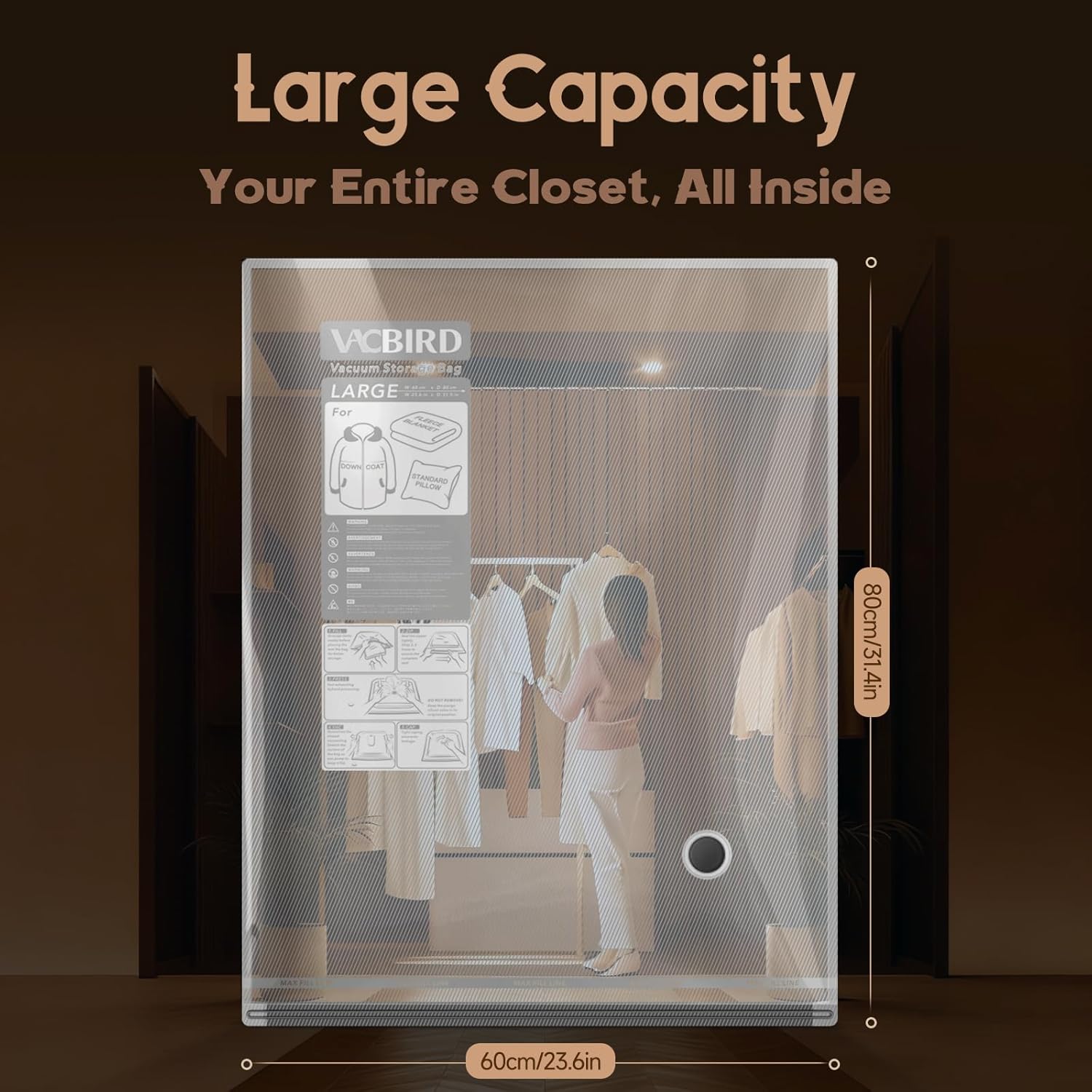 Fast & Efficient Compression: Powerful suction compresses bags in 10–15 seconds, saving space quickly and optimizing packing.