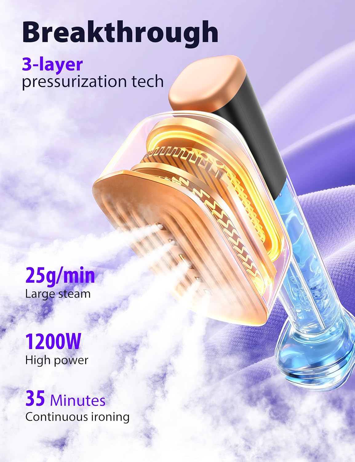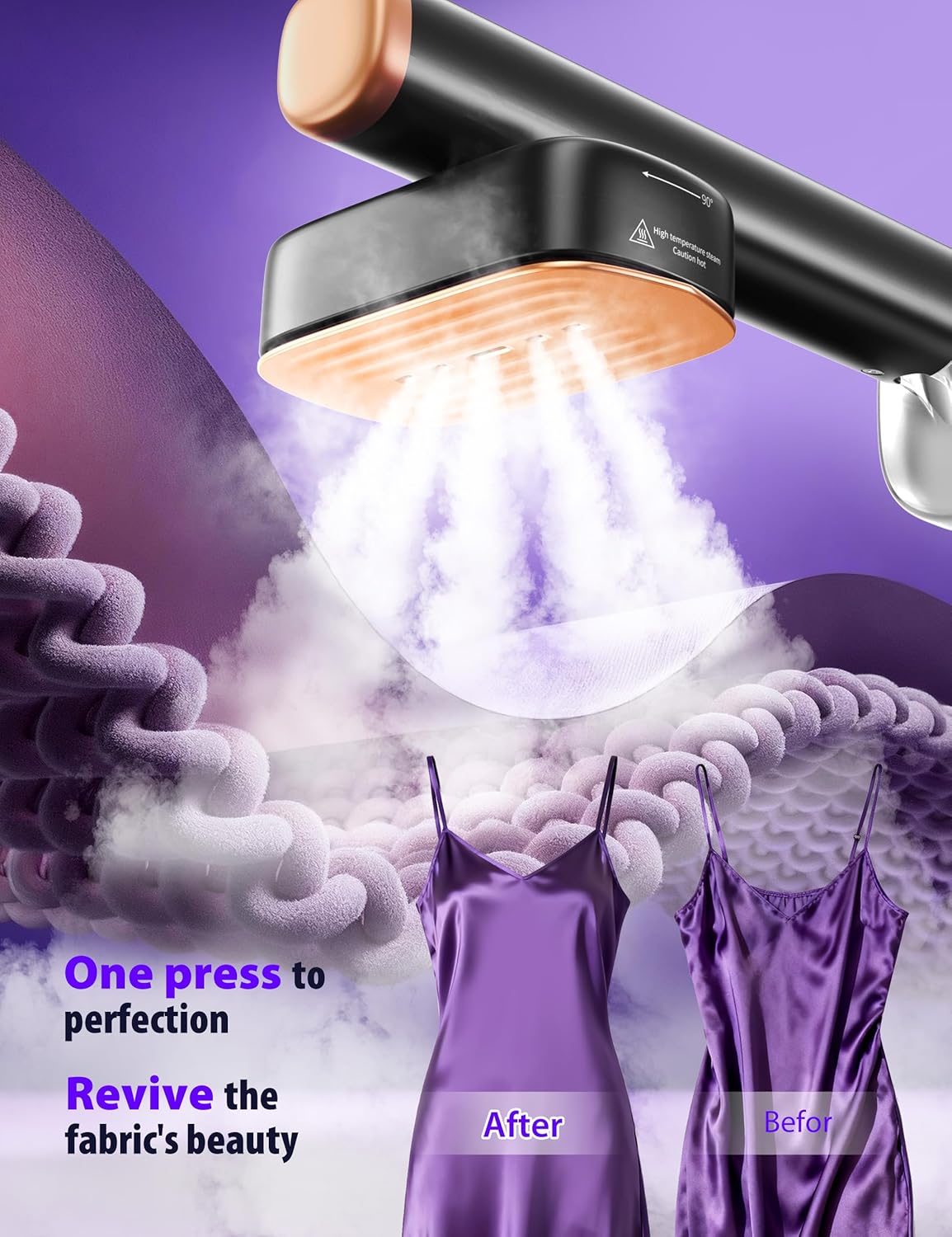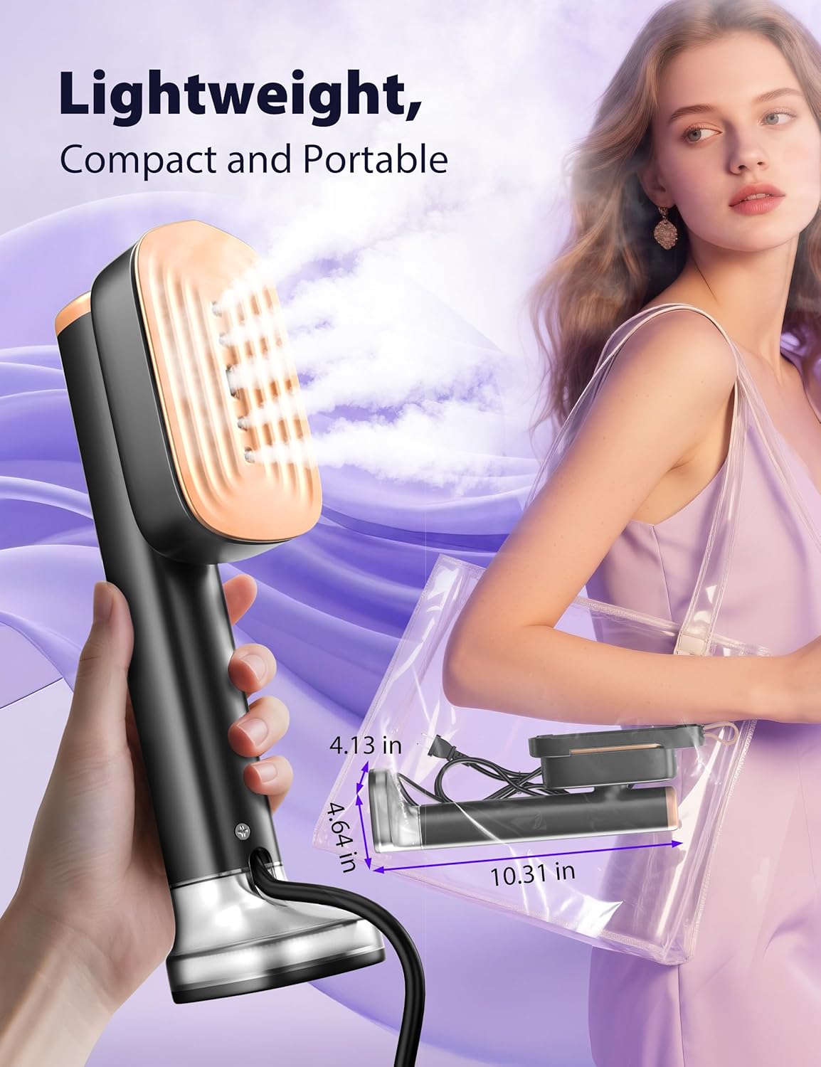 Steamer for Clothes Portable Handheld Garment Steamer,15s Fast Heat-up,180ml Tank,Steamer Ironing Gloves,35 Minutes of Continuous Ironing for Travel and Home(Black Gold)