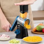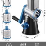 Geedel Rotary Cheese Grater, Kitchen Mandoline Vegetable Slicer with 3 Interchangeable Blades, Easy to Clean Rotary Grater Slicer for Fruit, Vegetables, Nuts